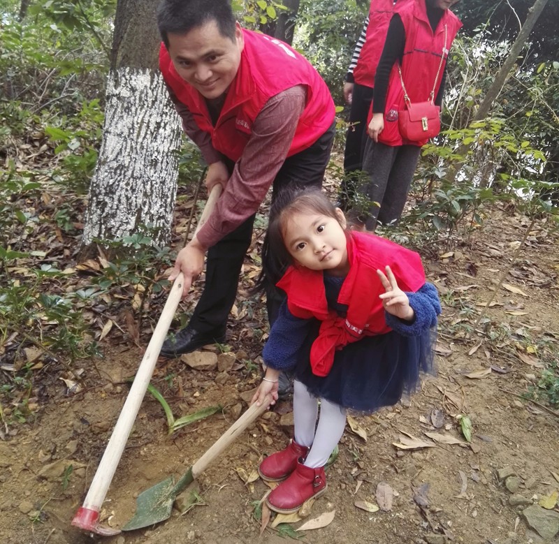 此次植樹活動(dòng)很多成員是全家動(dòng)員,共同上陣,大人們負(fù)責(zé)扶著樹種和鋤土相對(duì)繁重的工作,小朋友們也是非常的活躍,在旁邊跟著忙乎,一起植上代表綠色和希望的小樹,讓小樹帶著自己對(duì)家人、對(duì)孩子、對(duì)生活的美麗期許茁壯成長。