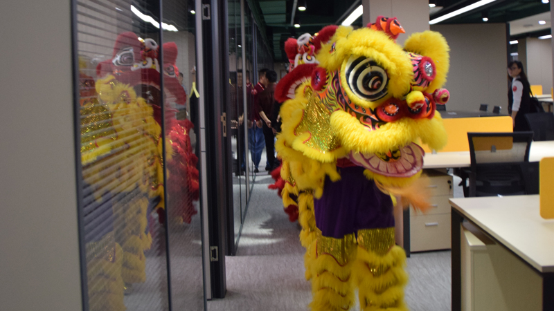 最后的舞獅表演給本次揭牌儀式暨喬遷慶典劃上圓滿句號,到場嘉賓隨后自由參觀新美創(chuàng)意大廈,三五成群,高談嬉笑。