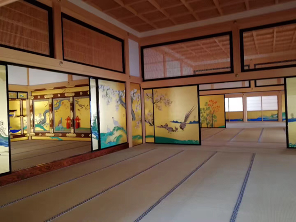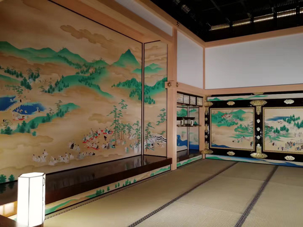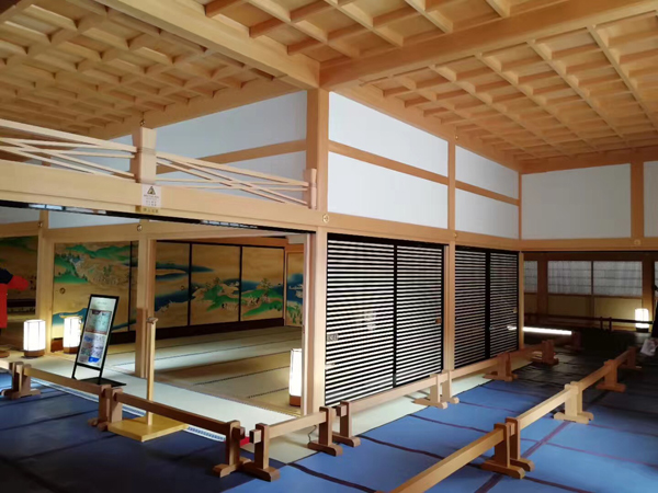 名古屋城。城堡建于1612年,它被大塊的公園包圍著,周圍有小的茶室、傳統(tǒng)的日本庭園。城堡里最大的特色是裝飾在屋檐上的兩只金色的海豚。城堡中比較吸引人還是本丸御殿,里面有各式各樣的日式室內(nèi)擺設(shè),門框上貼了金色的復(fù)原畫作都很有意境。